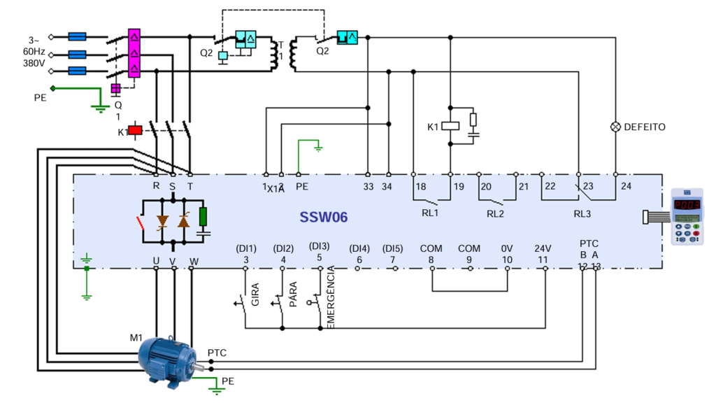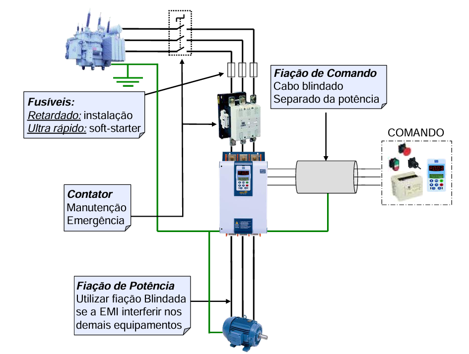 Placa de identificação, partida direta/reversa, proteção e manutenção.